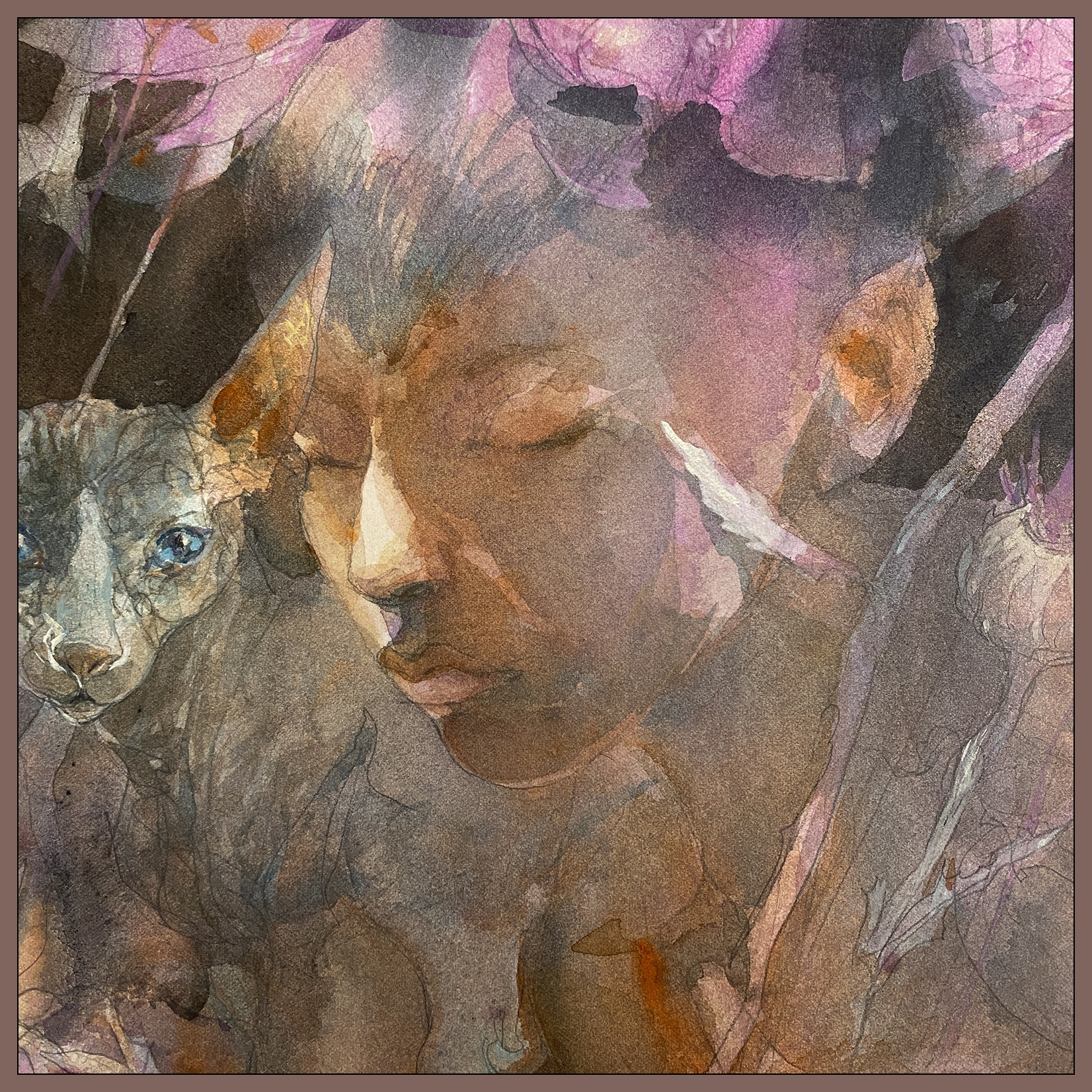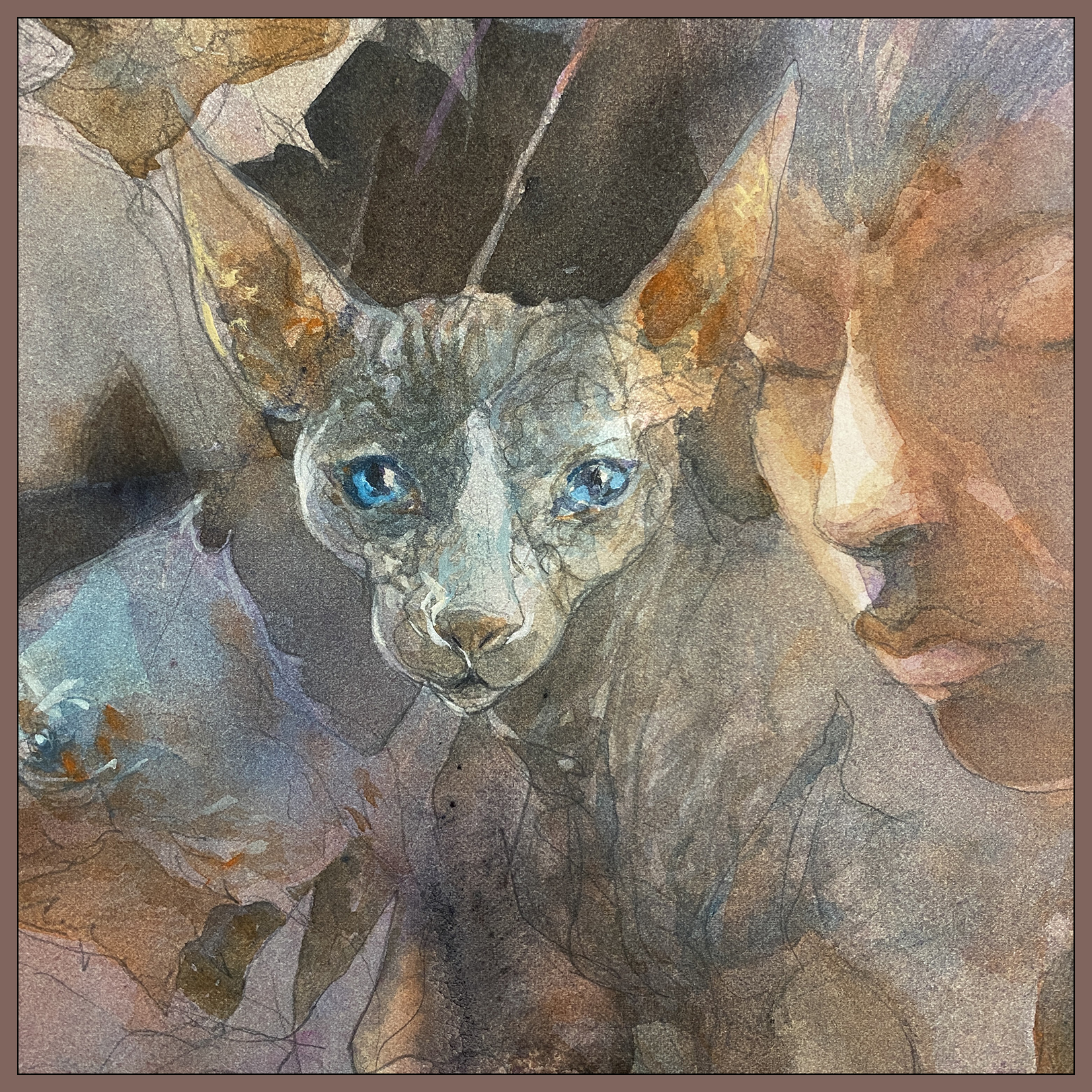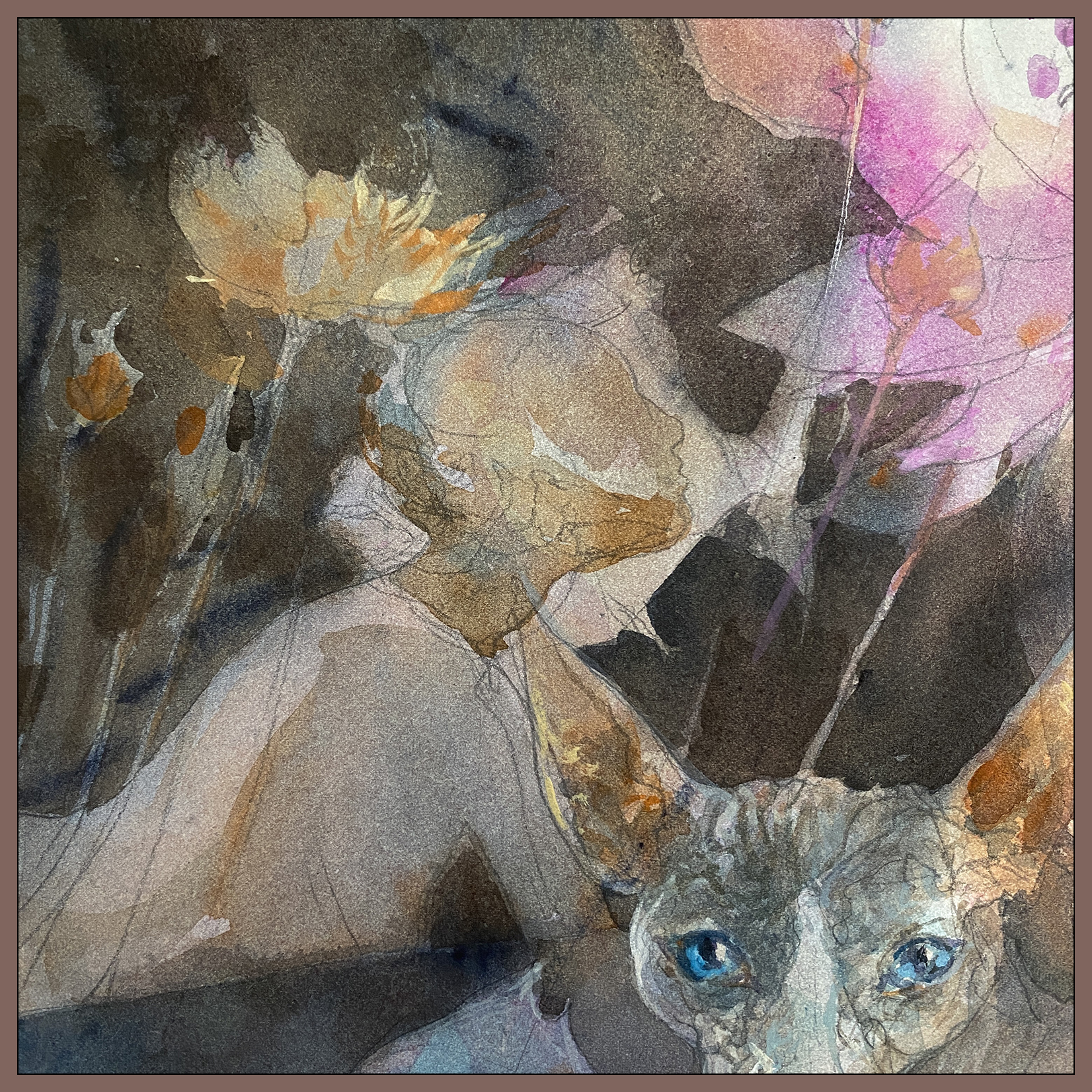 This one started with a drawing of course, but instead of trying for this depth of color with my usual wet-on-dry direct painting; I’ve flooded the paper probably 5-9 times with transparent glazes. (Depending what areas we’re talking about).