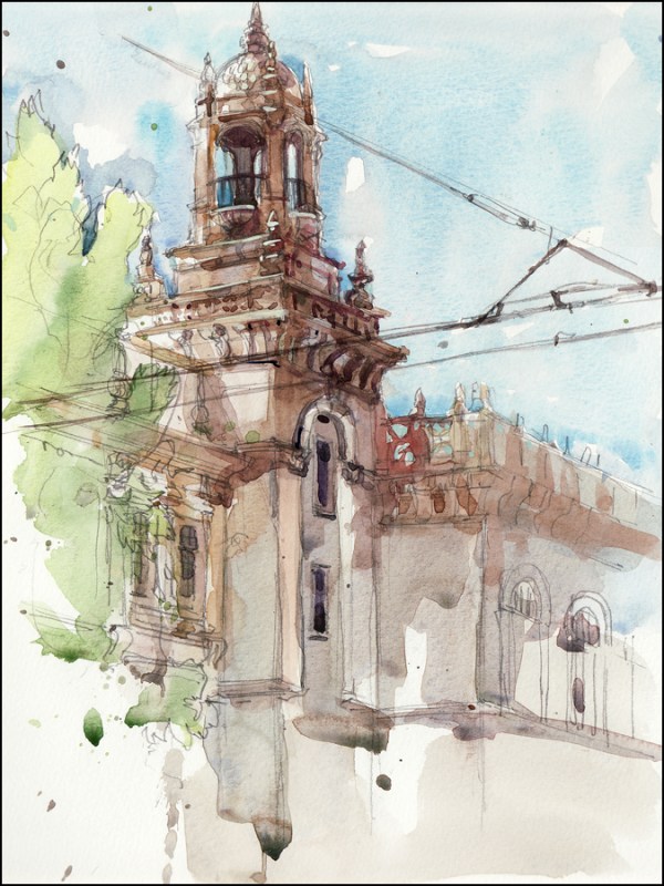 I thought I’d get out and sketch it while we were in town – you never know when restoration leads to re-purposing. It might become a Starbucks or Gap for all I know. We haven’t lived in the SF area that long – but I’m already developing that locals attitude – wanting to preserve everything before its gone.
