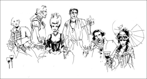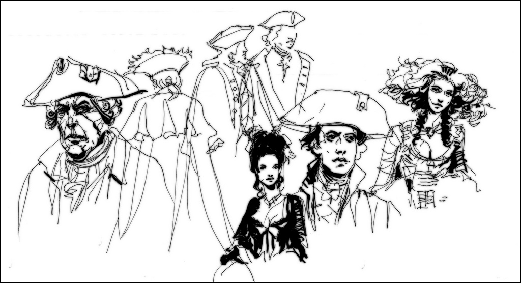 Here’s something I did a while back. Was home sick with a cold. Didn’t have the energy to go out to sketch, so sat in front of the TV and drew my way through “The Duchess”. (2008, Saul Dibb – IMDB notes here). Certainly not a good way to watch a movie. Strangely I didn’t understand much of the story:) But hey – loved the costumes