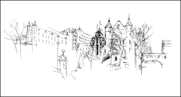 Today was the 30th world wide sketchcrawl! My jaunt took me down Rue Parc, past the Monument Georges Etienne Cartier (home base for the famous TamTam drum circle in more clement weather) and down to Rue Pins to the Royal Victoria hospital. The Royal Vic is this totally Hogwarts style building – always fun to walk by. The area from Rue Parc to Cote Des Neiges is stocked with impressive mansions. Made more so by their looming positions up on a steep cliff. (Which is festooned with huge icicles today). I was planning to end up at the Beaux Arts museum and do the ethnographic collection – unfortunately closed for renovation today. So instead I sketched some saints, some moody nuns from Pascal Dagnan-Bouveret’s “The Pardon” (1899), and a unreasonably lascivious death and the maiden statuette. Hope y’all had a good sketchcrawl of your own!