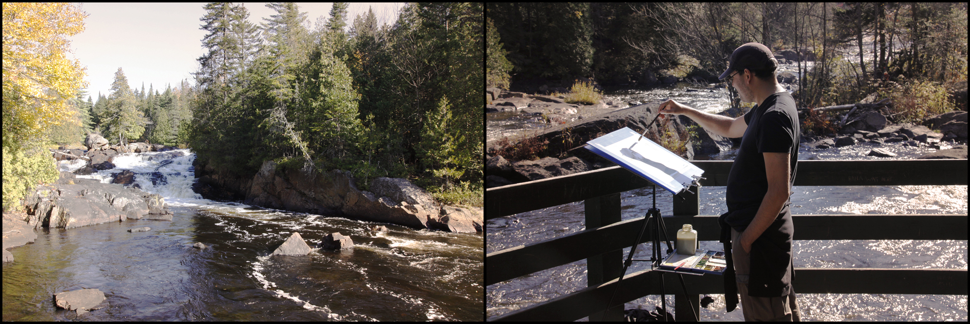 The fall colors seem to have come and gone whilst I was chained to my computer drawing various things I can’t show you. We made a last ditch attempt to get out to see Mont Tremblant before leaves were gone entirely. Was a lot more green and gold than I remember it. Shouldn’t there be some maples in here if it’s Canada? In any case – was good to get out – and challenge myself with some moving water. I have to say – damn hard to paint waterfalls. Moving water is going on the list to try again. Oh, and before someone asks – yes, Diablo Falls is 10 minutes away, and is much more exciting! Has a better name too. I can’t figure out what ‘Croches’ means. And google is not much help. “Did you mean…”