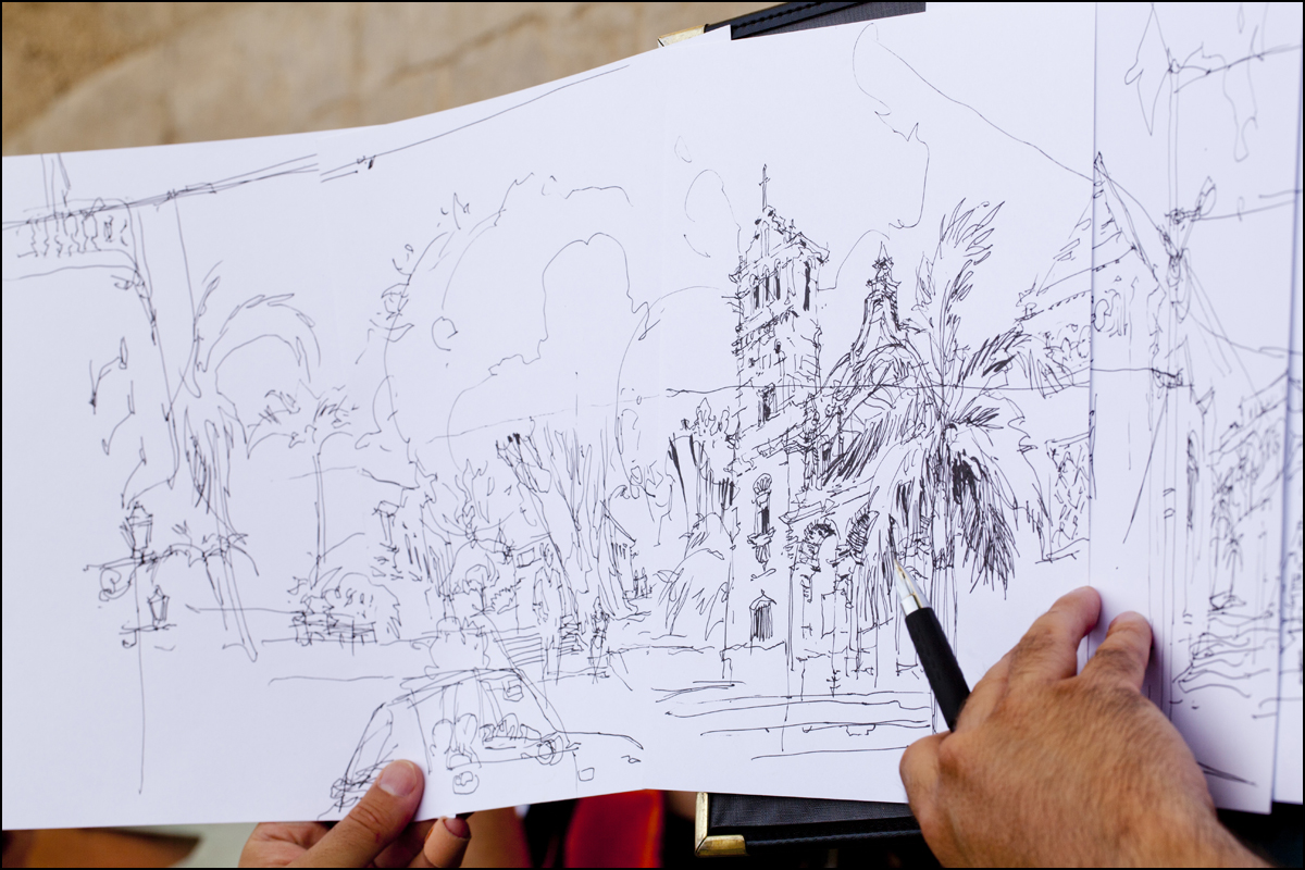 Over the course of the symposium we went to three sketch crawl sessions, took classes from Eduardo Bajzek and Veronica Lawlor, ran my own watercolor sketching workshop three times, dropped in on the evening portrait party, and talked endlessly about urban sketching. A perfect way to spend a long weekend in the Caribbean with a hundred of your friends.