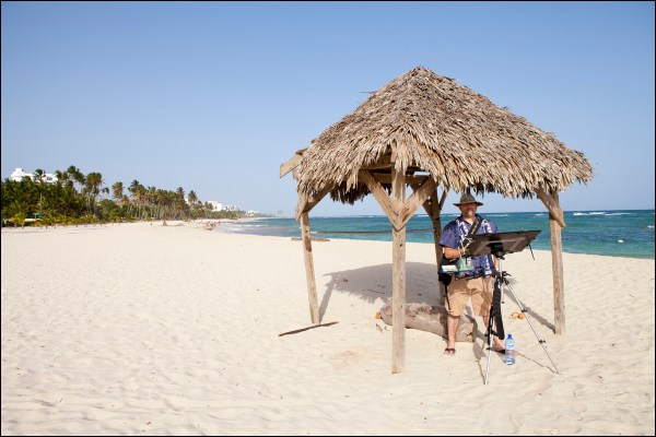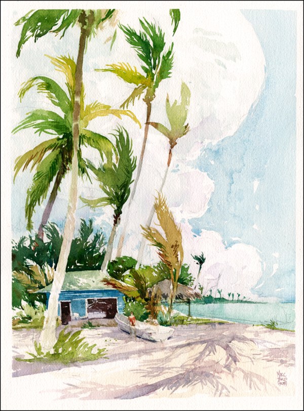 It was good to re-group and apply some of the things I learned from the symposium. Using Eduardo’s advice on negative space to draw those complex walls of palms, and taking the trick of lavender shadows from James Richards. You learn a little bit from each person!