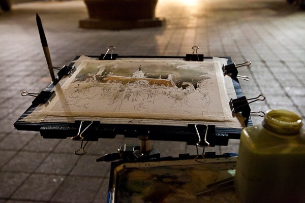 I haven’t gone night sketching in quite a while – but I’m using every moment of good weather before my sketching trip to Portland next week. (The workshop, by the way, has maybe one or two spaces left. [info here])