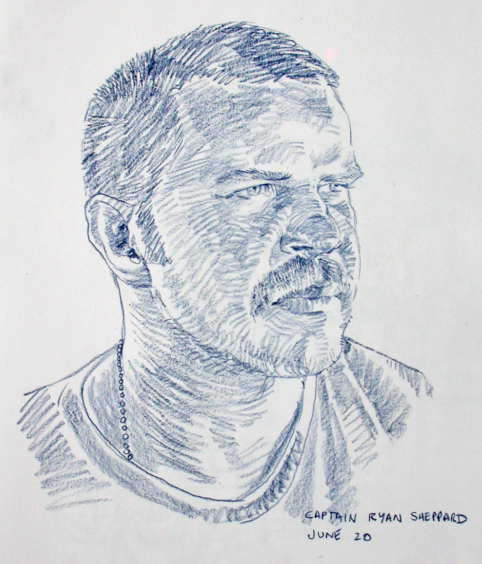 RJ: I don’t pretend to compete with photographers. There are no shortage of brilliant photo journalists out there who believed like I did that people should know more. But with all respect to photojournalists, I think that the art connects with readers in a completely different way. Not a better way. But when you look at a portrait of a soldier that I have sketched you are looking at a period in time that we have shared one another’s company and gotten to know one another. In general I will already have a relationship of some kind. Because soldiers are a tough nut to crack. So usually I will have been on patrol or gotten to know them a little before I ever get to the point of sitting them down to a portrait. So I think it is that connection between the sketcher and the subject – through the pencil and paper which translates to such a strong response from the viewer, or in my case newspaper reader. One of the things Brodie told me was to “draw without opinion”. He believed that simply drawing for accuracy was enough, and that by reaching for accuracy and ignoring opinion what came through was the essence of the subject. I have attempted to follow that guidance.