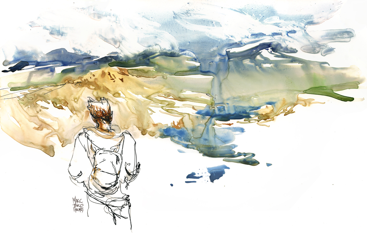 [Images roughly 10×17″, pen and ink and watercolor on yupo]