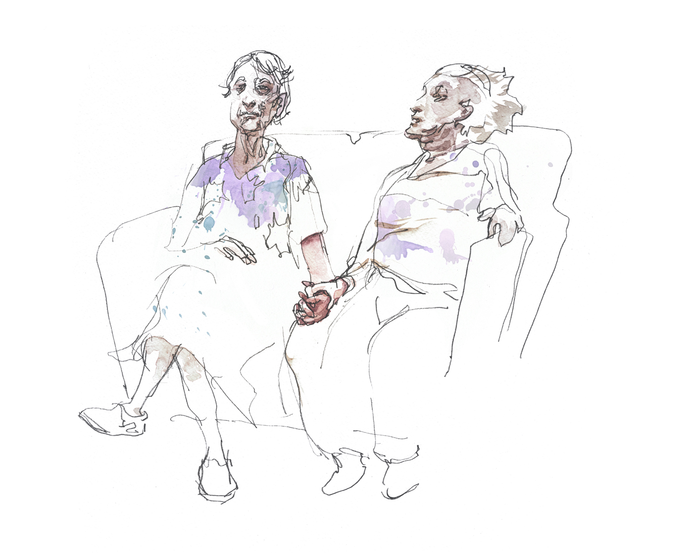 I’ve recently been drawing on location at a residential home for people with Alzheimer’s disease. I was there on behalf of Science Quebec Magazine, gathering drawings for their article There is no Cure for Grandmother. You can order the issue in e-format [here]. (In French).