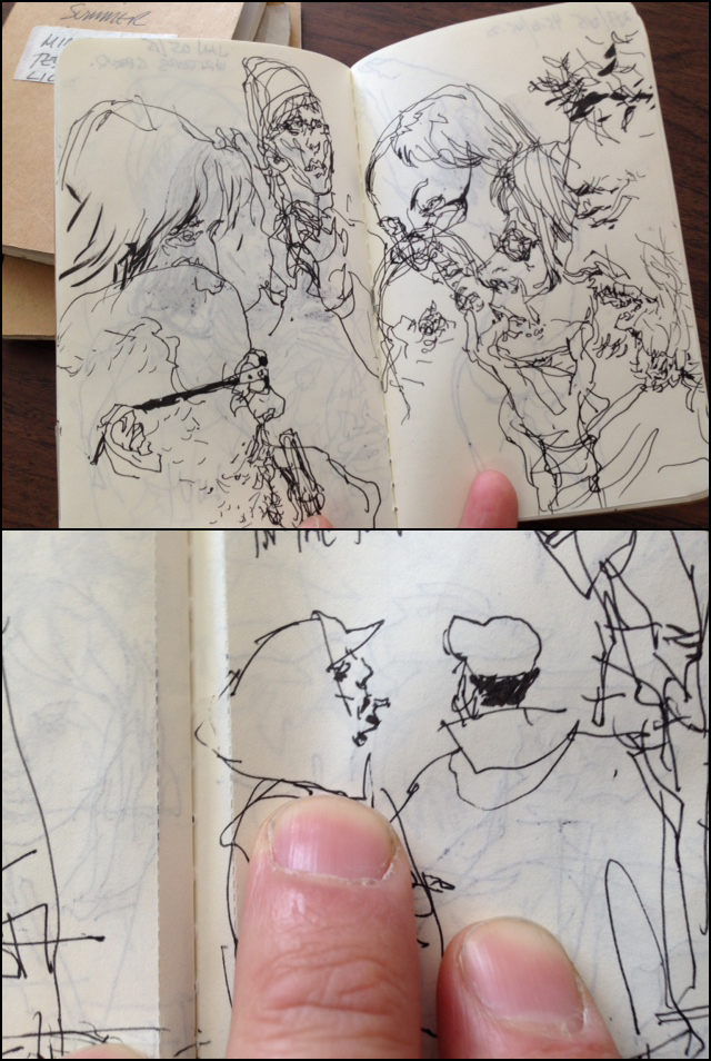 The trick is simplification. Here’s some big heads in a small book, versus a really tiny portrait. It means leaving out all the non-essentials.