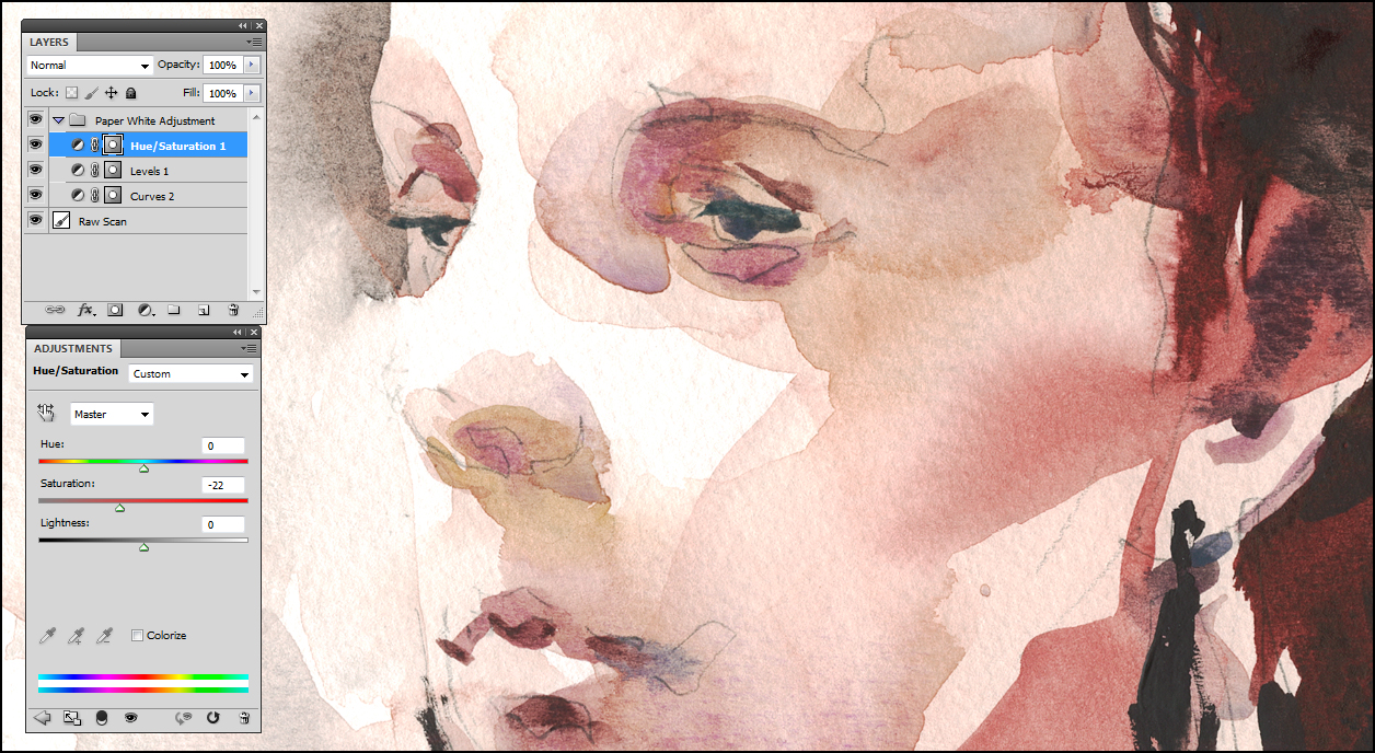 Thank you for sharing your technique on scanning watercolors, Marc. In addition to the Photoshop work, it is important to calibrate the scanner and the computer display to get a better approximation of the colors. I finally did this and the results are better than without calibration. I owe an Epson Perfection 600 bought recently because it was the best model for a moderate price. Thanks again!