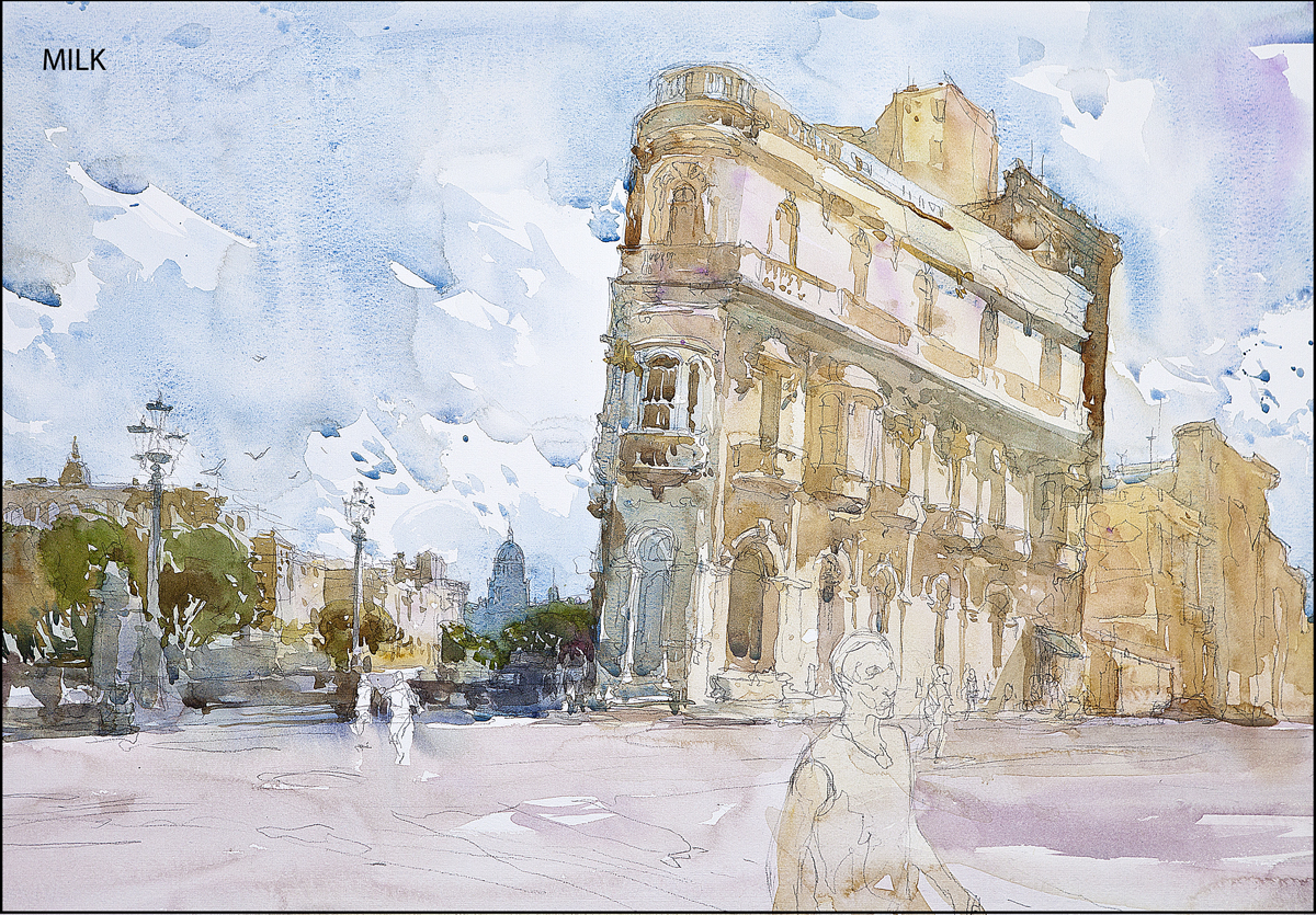 Just a quick note to say I have an article up in the current issue of Watercolor Artists magazine. It’s a thing North Light Books does with all their authors, where they reprint excerpts from our books. The June issue features part of chapter three of The Urban Sketcher, where I demo the approach I like to call Tea, Milk and Honey. Tinting a pencil drawing in three passes of watercolor, working from Large-to-Small, Light-to-Dark, and Wet-to-Dry.