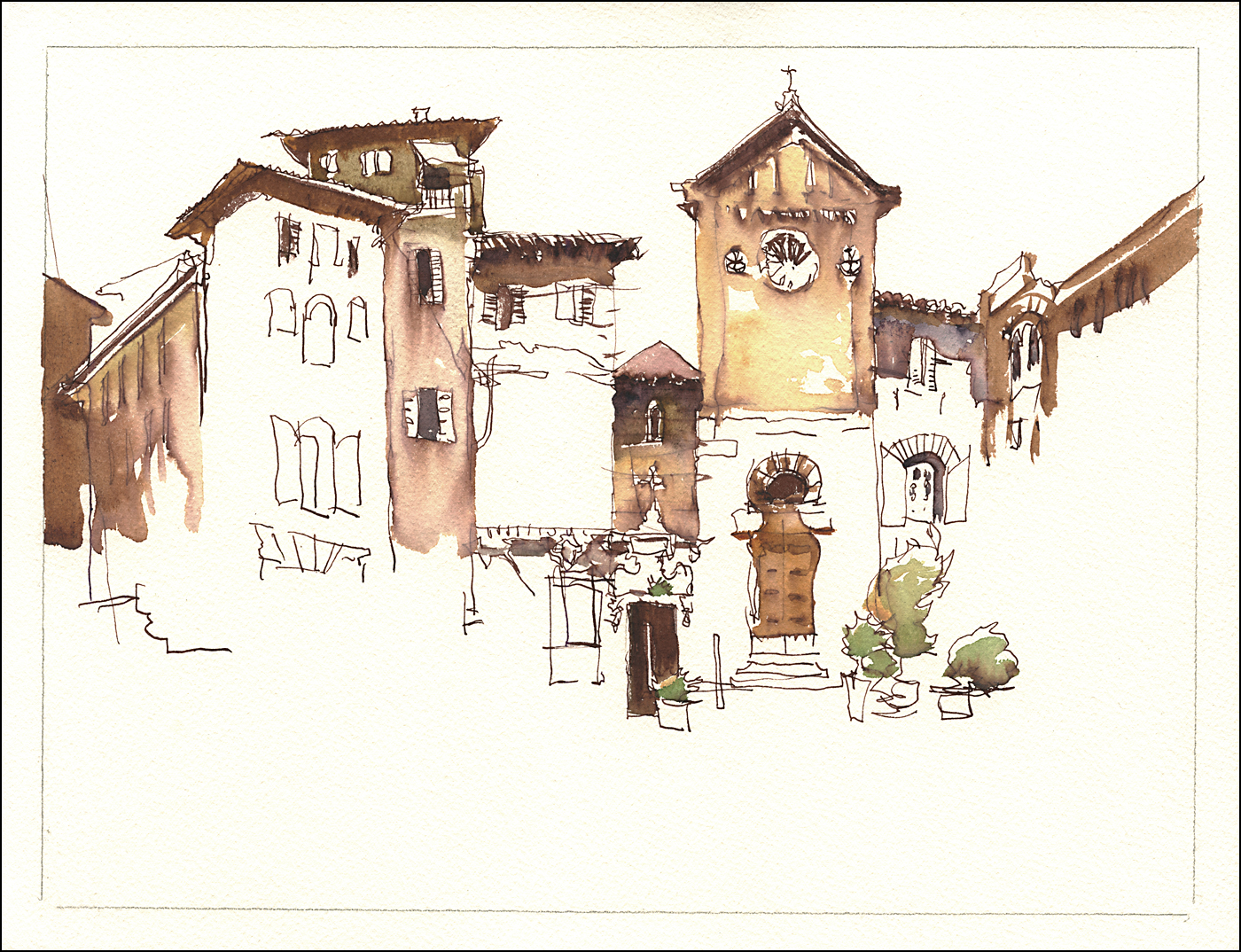 My wife and I just returned from Italy, where in every city and site I scanned for urban sketchers hoping to connect, and being (just slightly) disappointed in seeing none. Imagine my surpise to read your Italy posts and realize we missed your group by perhaps a few moments… I’ve enjoyed and benefited from your book and esty sketching class, and now from your sketched impressions of Italy. Thanks, MTH!