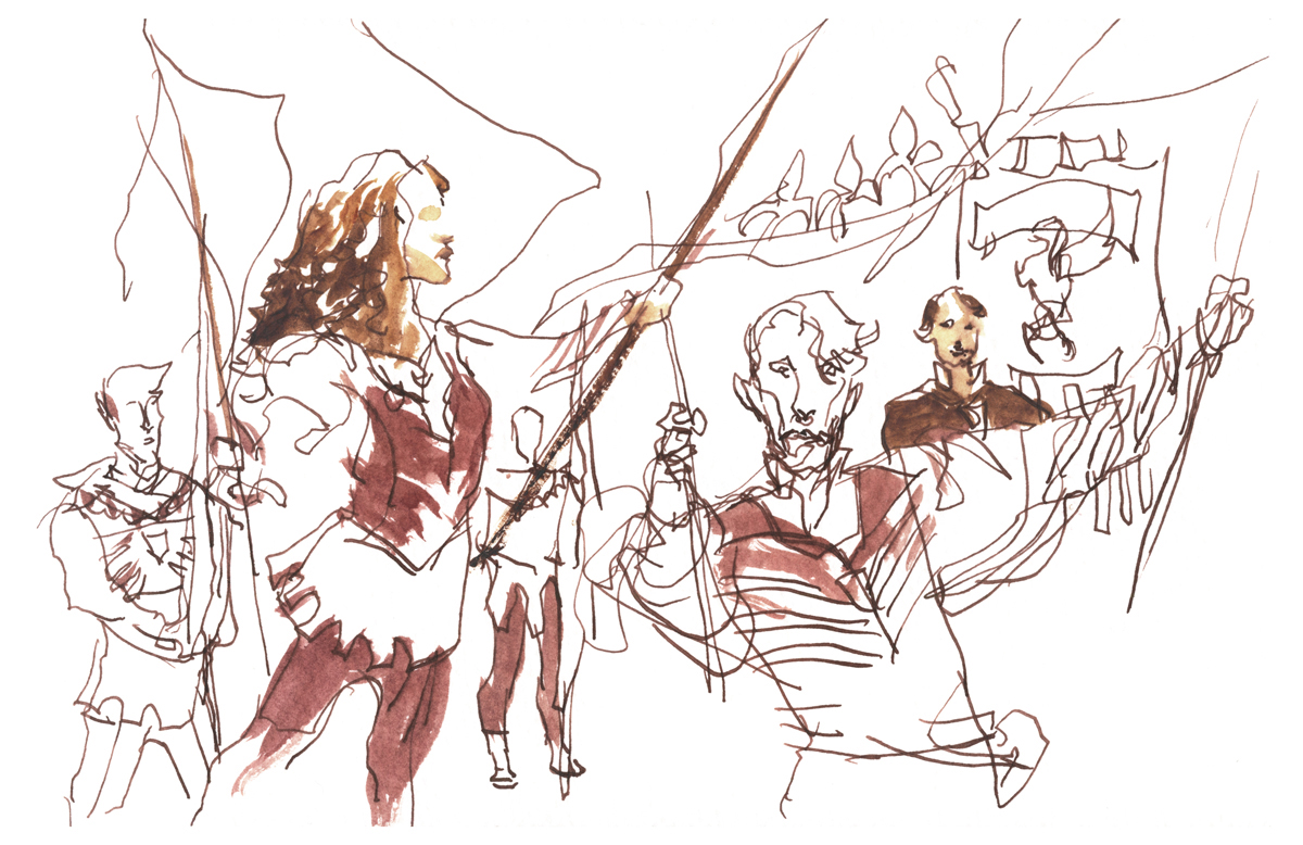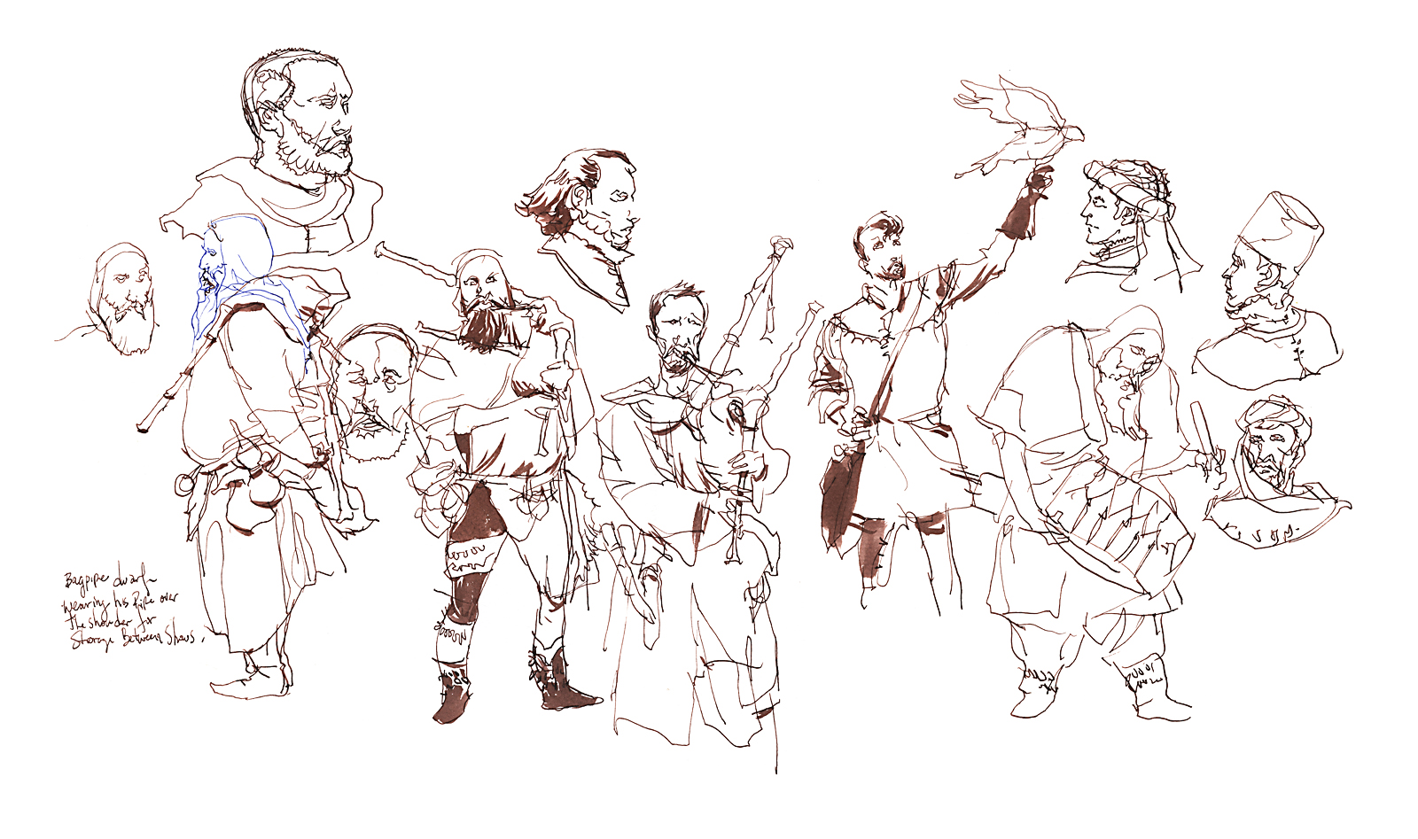 That’s real dedication to your art: going back 700 years in a time machine to make some sketches. That’s what it looks like, anyway. The photographs of the festival made for an interesting comparison. I’d love to see the pairs in their medieval version of a kung-fu dance-off. It sounds intriguing.