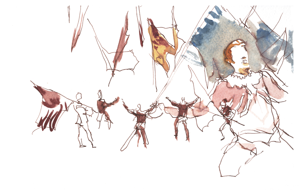 Sketching People in Action at the Cortona Flag Tossing Festival : Repost with real scans!