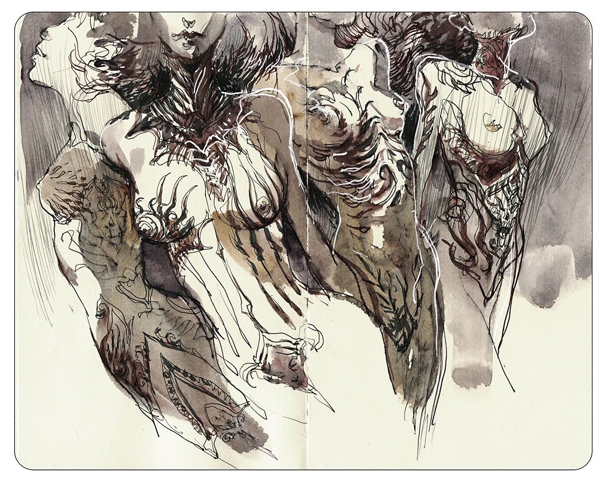 But like any kind of art – it has to be something you do for yourself. Partially – I’m simply having fun in this sketchbook. Trying to draw without a filter. Letting the subconscious choose subjects. I have this feeling that I have to put recurring motifs down on paper or I’ll forget them.