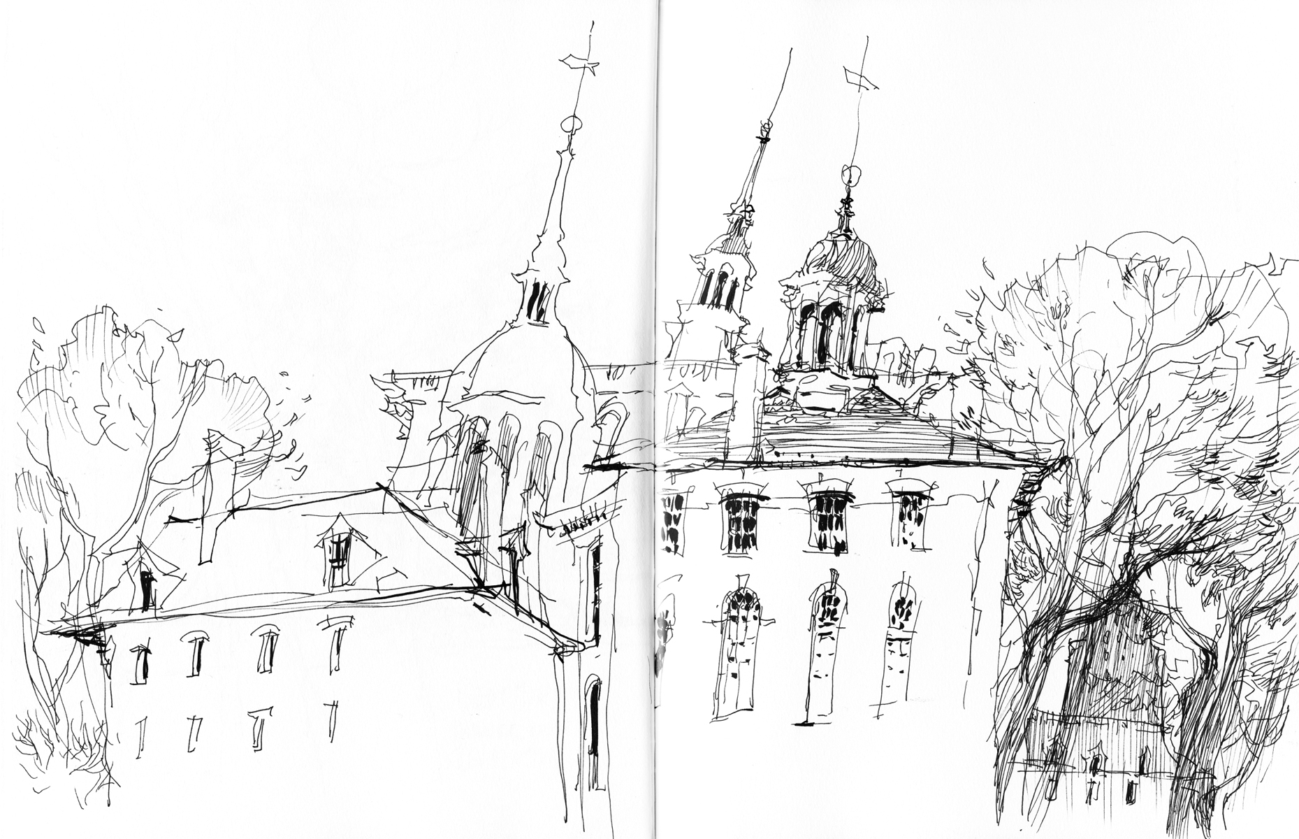 So – the reason this course (referring to my Travel Sketching course) has so much emphasis on drawing-at-speed and embracing-your-errors via single line sketching in ink – is exactly to do with this problem of ‘cartoony’ sketchbook drawings.