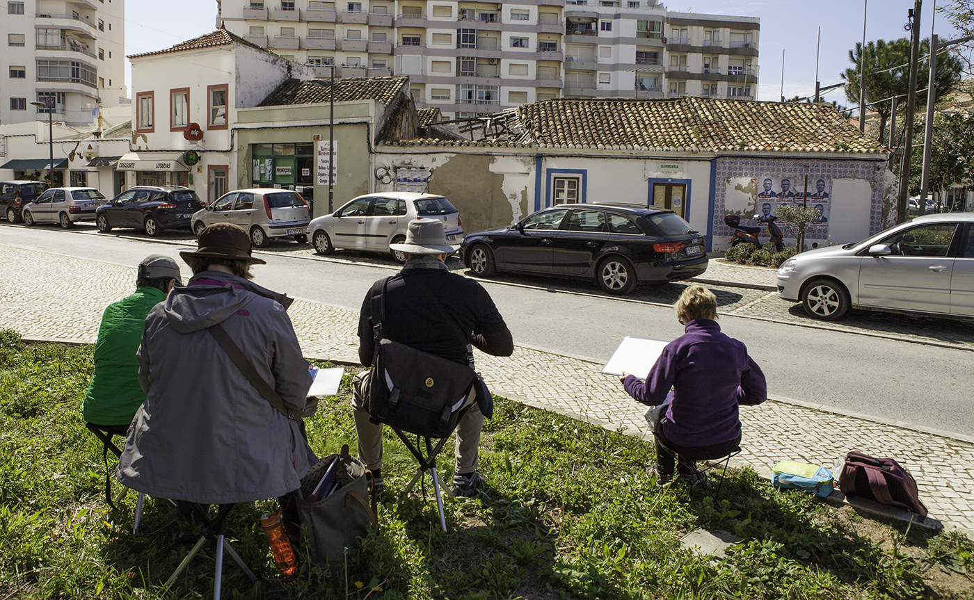 Though I thoroughly enjoyed the days painting the rocky coastline, there were also plenty of towns and villages to explore in the Algarve. From our home base in Alvor, we’d head out every few days on a bus trip to nearby Portimão or Sagres, or go inland to Silvas and Monchique. Each ‘travel day’ we’d try a different guided painting exercise in the morning and explore in smaller groups in the afternoon.