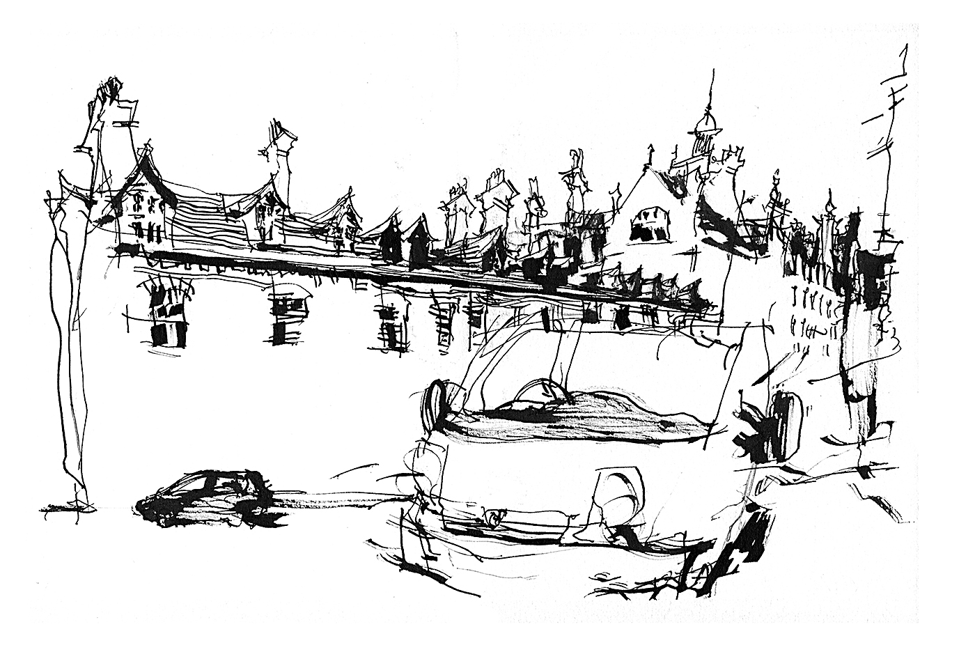 Marc, I love the way you use the dual nib to sketch the roof tiles. I read you are coming to Ireland soon, there is a David Hockney exhibition in Belfast at the moment, just in case you are near. Love your loose work. Paul