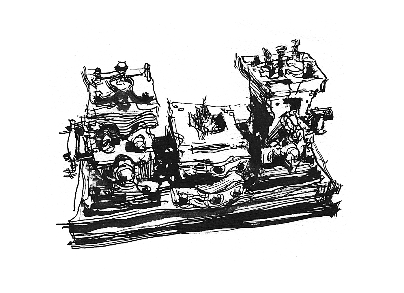 You can see the effect used in the roof of this block of British council houses. I just get a kick out of the fact you get twice as many lines for ever stroke. Double your normal drawing speed! (hah).