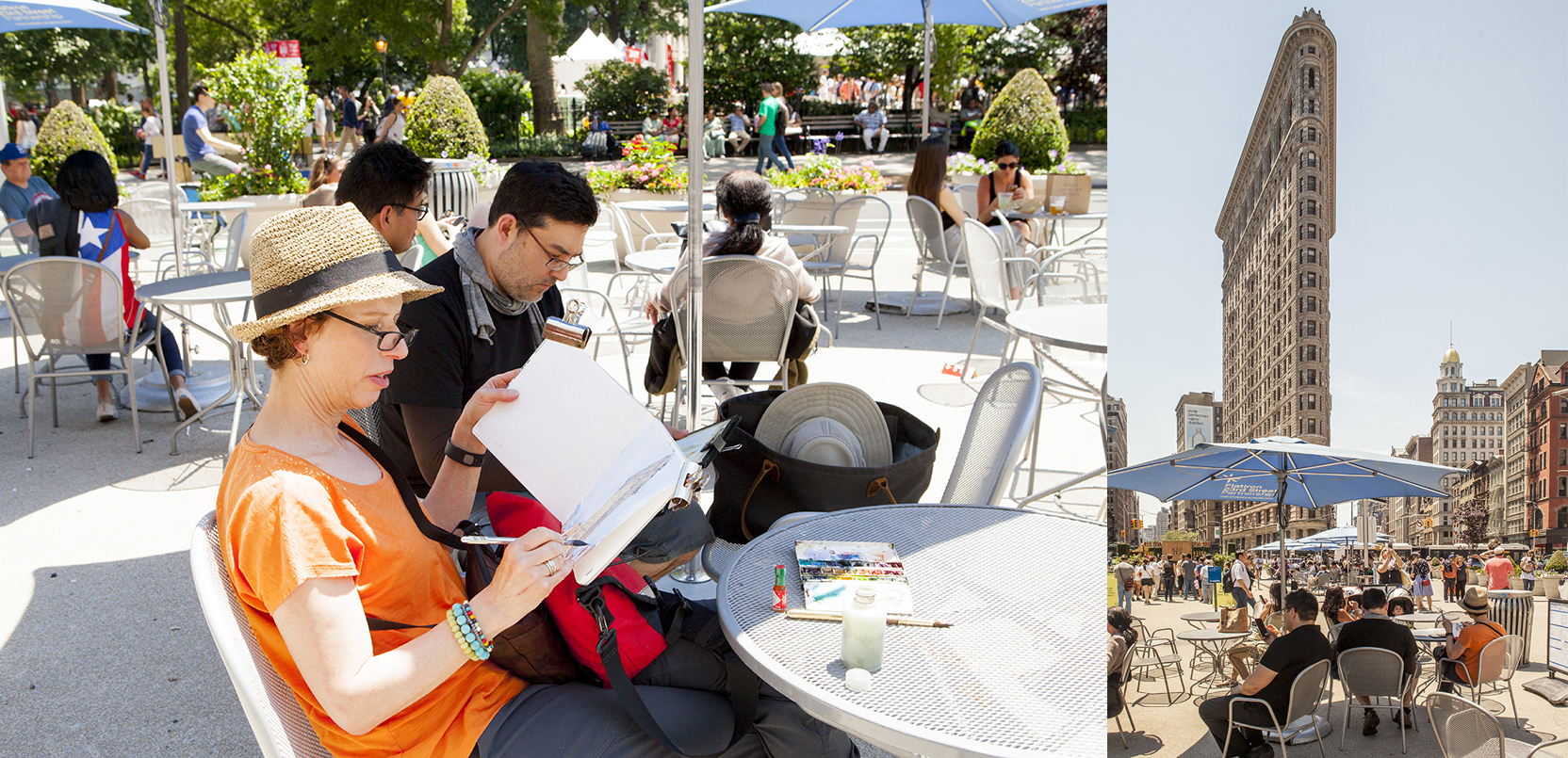 We were there with our painter-friend Shari Blaukopf. She knows the town well – so she made sure we found some great spots – like this cafe in Bryant Park, behind the public library.