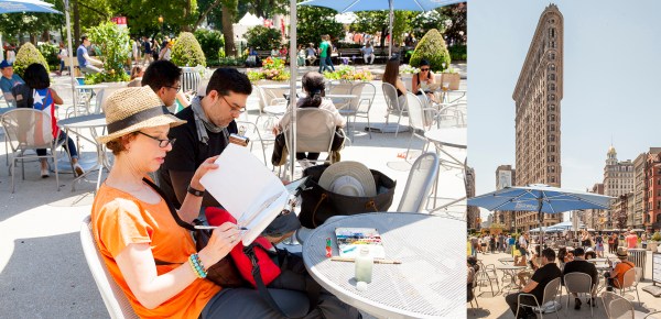 There were huge crowds at the nearby NYC BBQ Festival. I saw squads of photographers standing in the street to get the classic Flatiron shot. Somehow. people didn’t seem to know about this cafe at the base of the building.