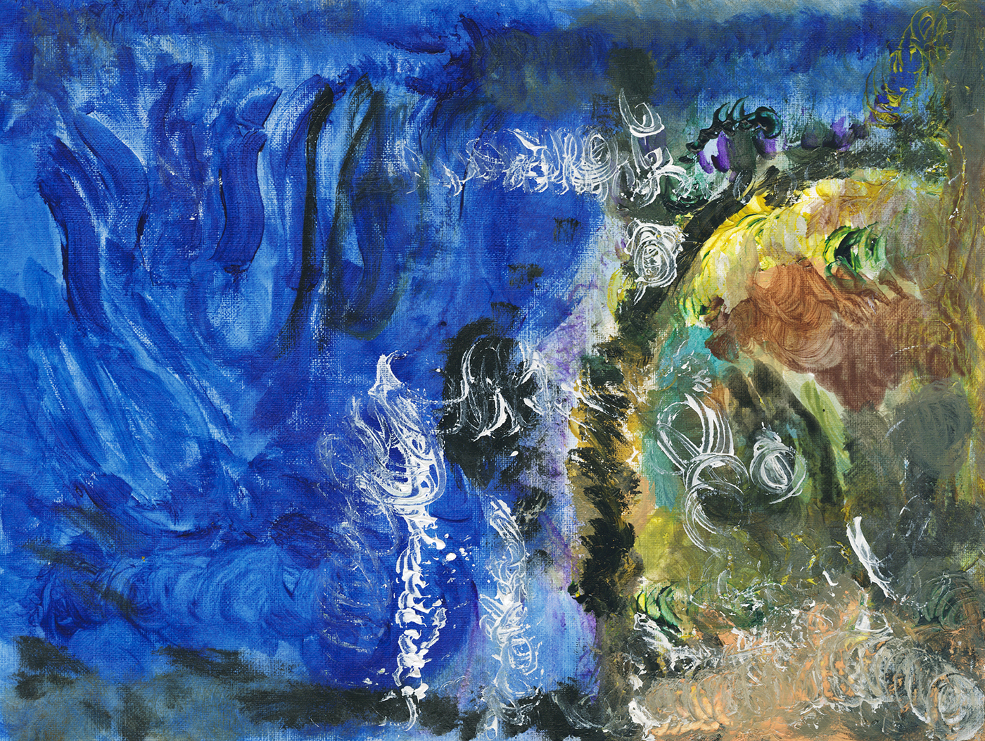 This burst of visual art was short lived. We didn’t keep exact track of the dates, but I’m recalling, it lasted about six months. Eventually the work began to lose the complexity of mark making and the clarity of color.