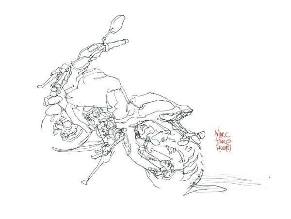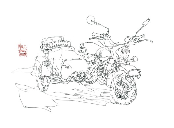Do you have any tips for improving the … expression… of the abstract “randomness” to the sketch lines? All your “randomness” in your lines (like the motorcycles) is so calculated that it looks so good. I feel I’m about 50% there, I “get it” (I feel it for sure, I know how the randomness emerges out of that feeling of energy of creativity and it just looks GOOD), but I can’t seem to level up past a certain point. It has looked the same for several years. You can make a simple squiggle on paper and the most random shape, and somehow it still just looks BETTER, even though its totally random squiggle
