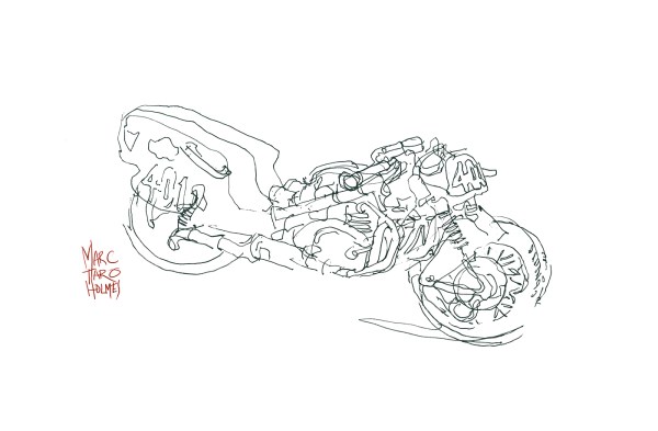 This interests me in that I am trying to just draw/paint cars and even trucks, and having trouble. But motorcycles are fascinating–not to ride tho. (hate them-seen too many accidents) I love the looseness of your lines. And they do look like the real thing.I prefer this kind of loose representation to a tight realistic drawing. Keep posting these drawings. Hope you will do more.