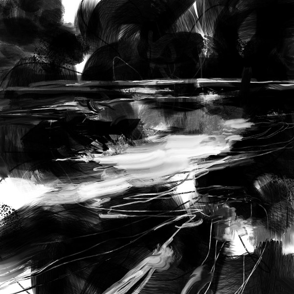 In my mind, looking at the black and white, I was seeing a great green slow-moving river surrounded by jungle, something like the Amazon. Seen from the point of view of a boat drifting downstream. Made me think of Joseph Conrad’s Heart of Darkness. For me, first encountered as a teenager through the Coppola film Apocalypse Now.