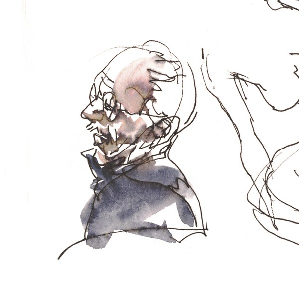 Here’s a few quick warmups with ballpoint-and-wash. Turns out, this particular pen wasn’t fully waterproof. But that’s ok. I like the way it neutralizes the colors.
