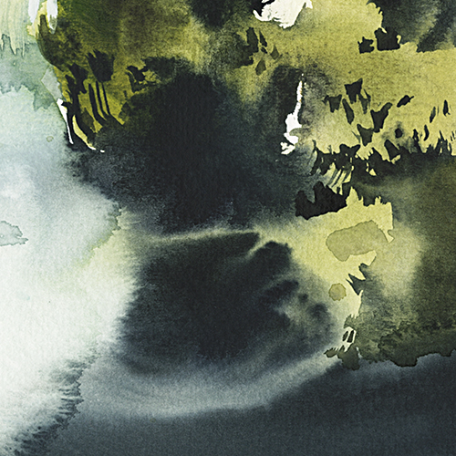 Wet-into-damp. (Indigo + Olive Green into watery Indgio + Titanium White)