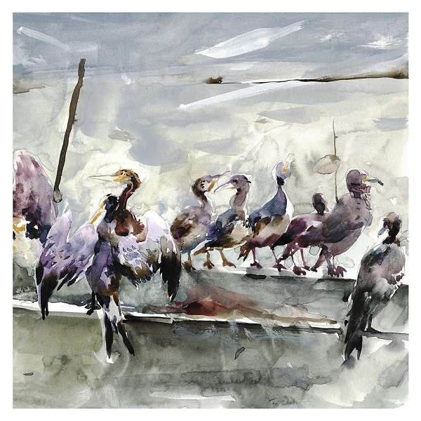 Hey, I love your urban scenes, but seeing the face of a fisherman and his crew of cormorants is a refreshing change for you. Although the painting may be from your archives, I hope you will play with this again.