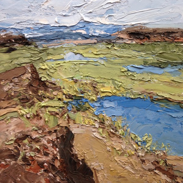 These happen to be my favorite pieces. I actually prefer to them to the larger work, because the scale of the impasto is more dramatic, and the ‘gallery wall effect’ – when you stand back and see the image resolve at a distance – is easer to experience in a typical living space.