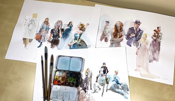 This 4 min short shows how I ‘grow’ figures by fusing brushstrokes into silhouette shapes, and of course stacking three passes of light, medium, and dark values together. The old – Tea, Milk, Honey concept.