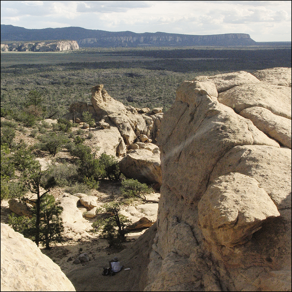 What I loved about this place was the contrast between massive blocks of stone where we stood, and the wide empty chaparral flowing out to the distant mesa.