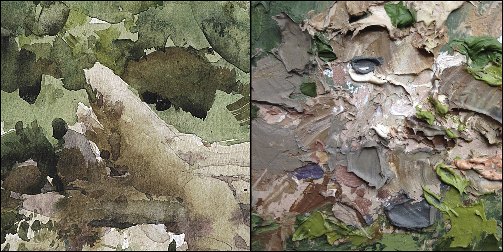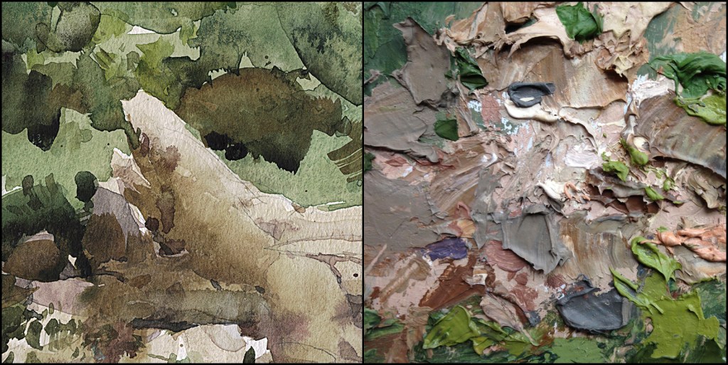Here’s is a side by side comparison. Watercolor vs. Oil.