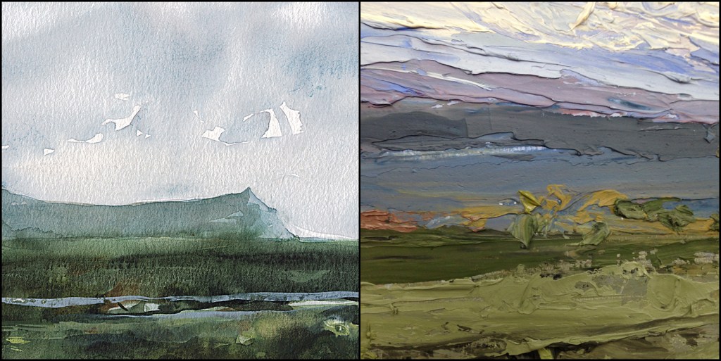 I see I dramatically exaggerated the horizon in the oil painting – turning it into a distant mountain. That’s the Canadian in me. There are no mountains like that in New Mexico. Not that I saw anyway.