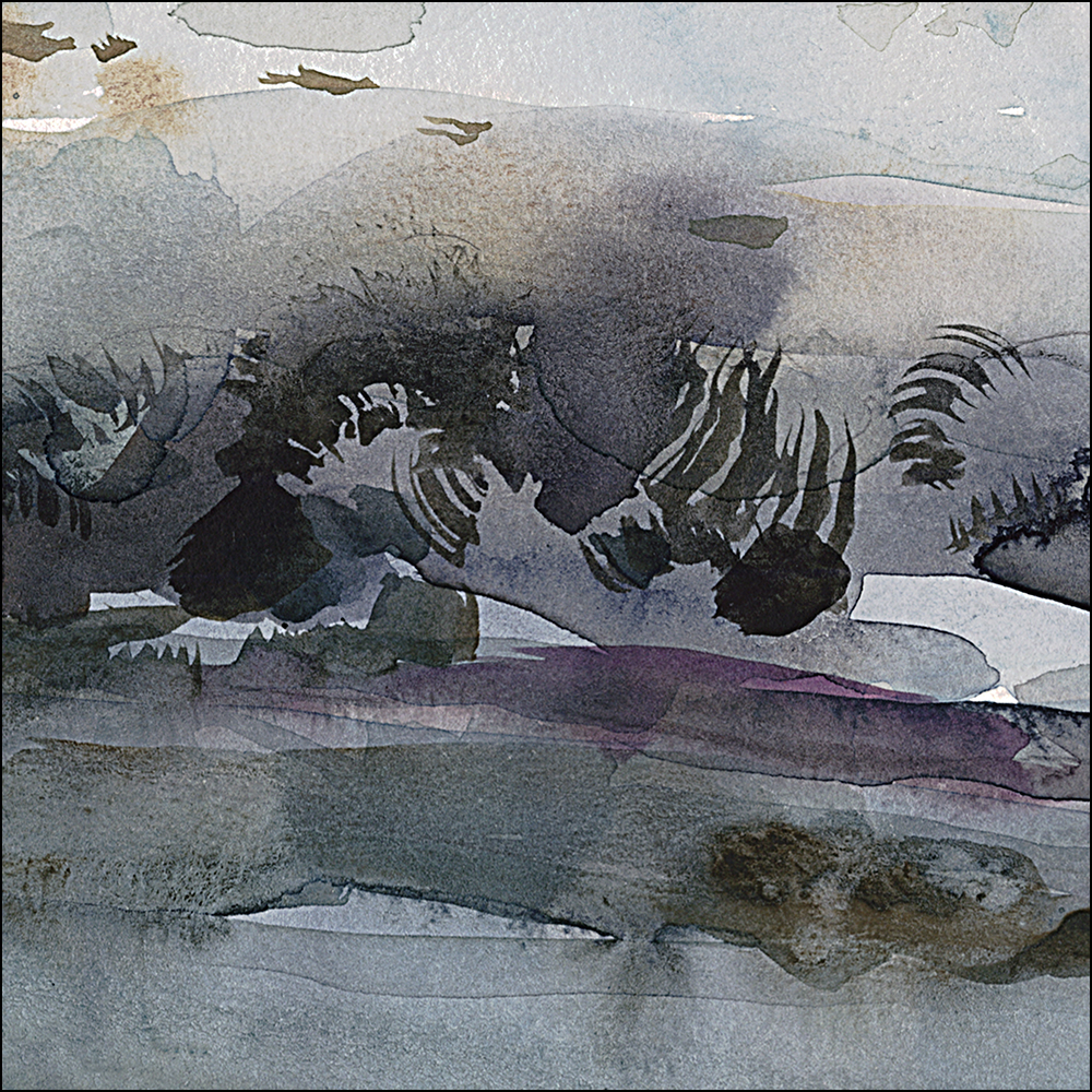 So that leads to another admission! I’m calling this Day 10 – but in fact, I’ve taken to doing the initial colored flood and leaving it to flatten. So, I’m actually starting an image on Day 08 or 09 and finishing it on Day 10, unless I happen to get a first wash done early in the day and can get back to it that evening. Many times, if the flooded wash goes too badly wrong, I will just tear it up at that stage and not even flatten it. Usually the issue is it’s too pale – or – I might have picked a wrong pigment and the wash is simply too intensely chromatic. Or – I just get a huge bloom in the wrong place. Many things can happen!