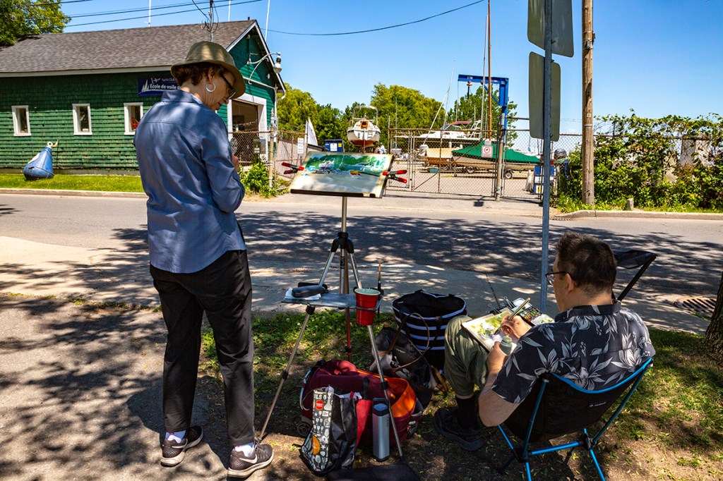 The photos of you and Shari out painting gave me a warm, fuzzy feeling. It’s been so long since I’ve been able to draw/paint on the street. The last time was the day that you and I stomped around downtown Montreal. I did, finally get my knee surgery (after being postponed twice due to COVID. If things continue to go well, I should be able to start stomping again, although maybe a bit more slowly than before :-)