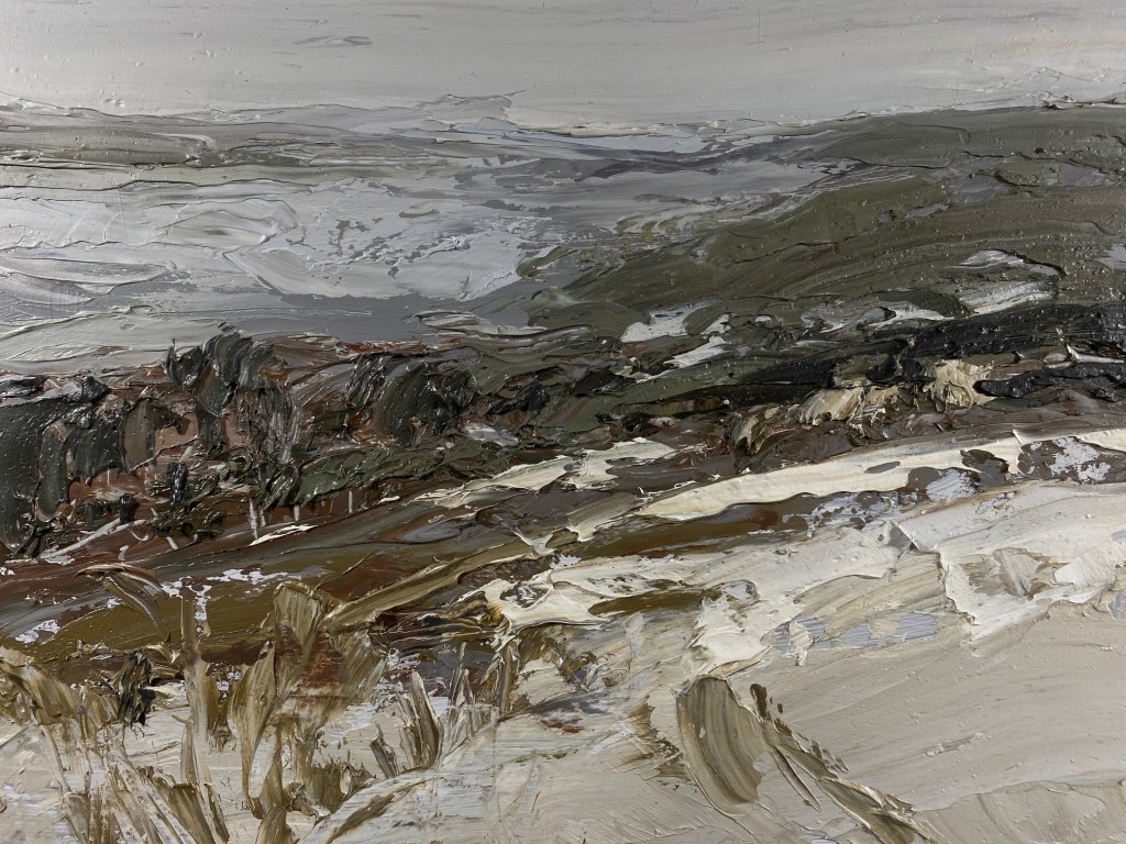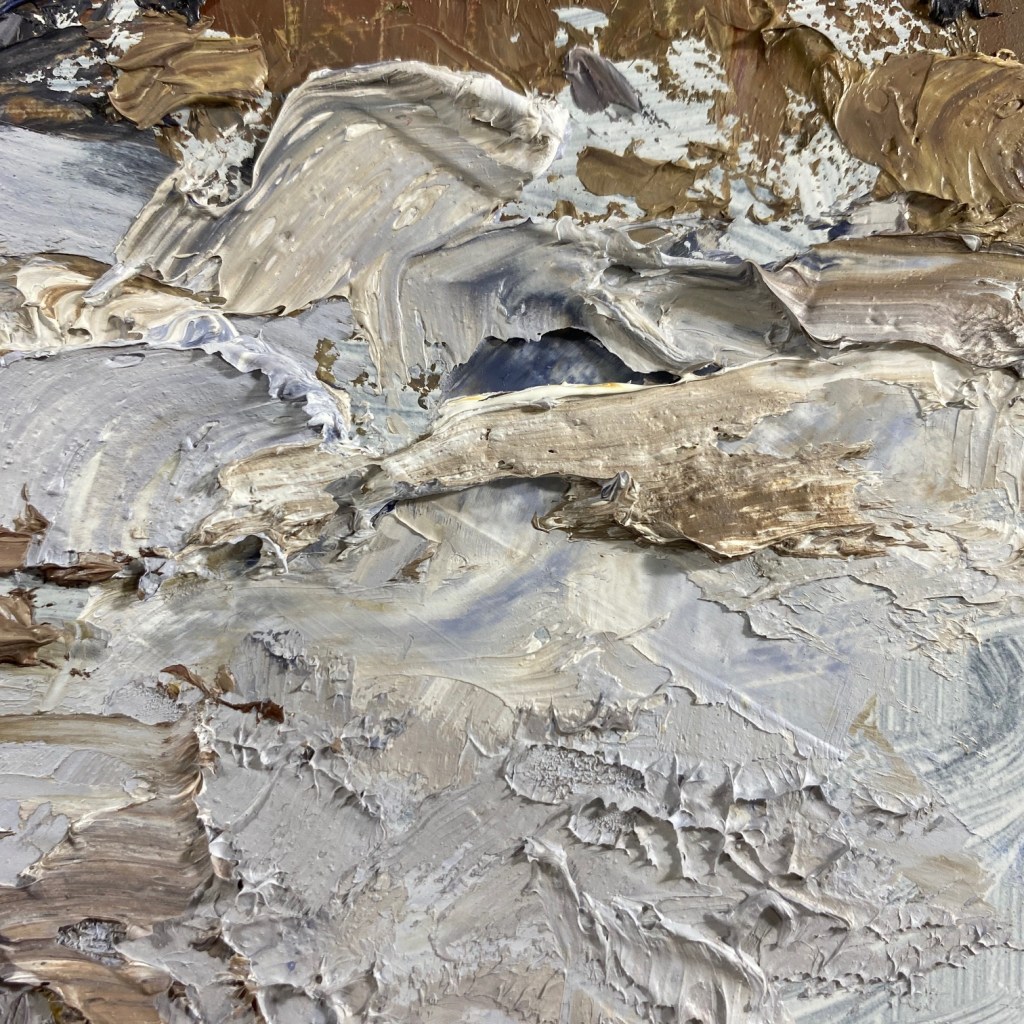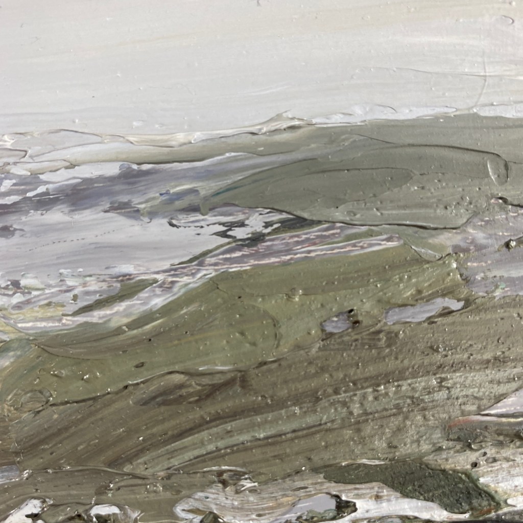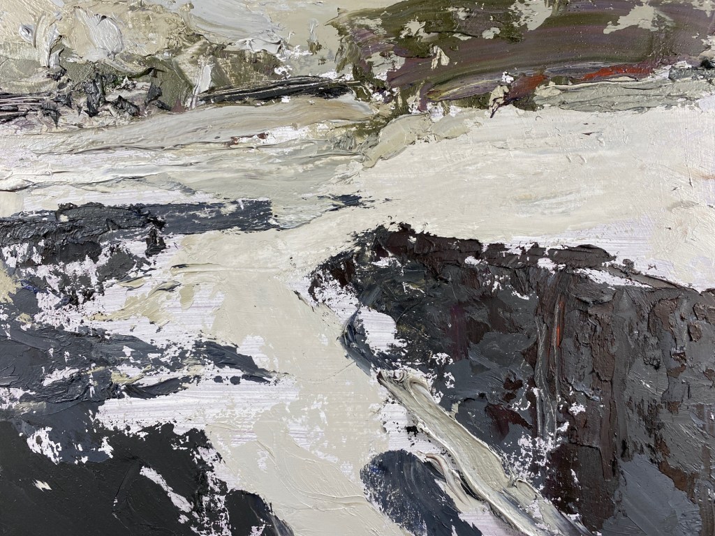 All these works are 9×12″ Oil and Cold Wax Medium on Panel. This time I used W&N Griffin Alkyd mixing white – which is a fast drying white. When mixed with traditional oils it does a wonderful job of setting up the paintings in a few days (maybe a week). Dry to the touch in any case. Very handy for impasto work like this, which might have taken months to cure.