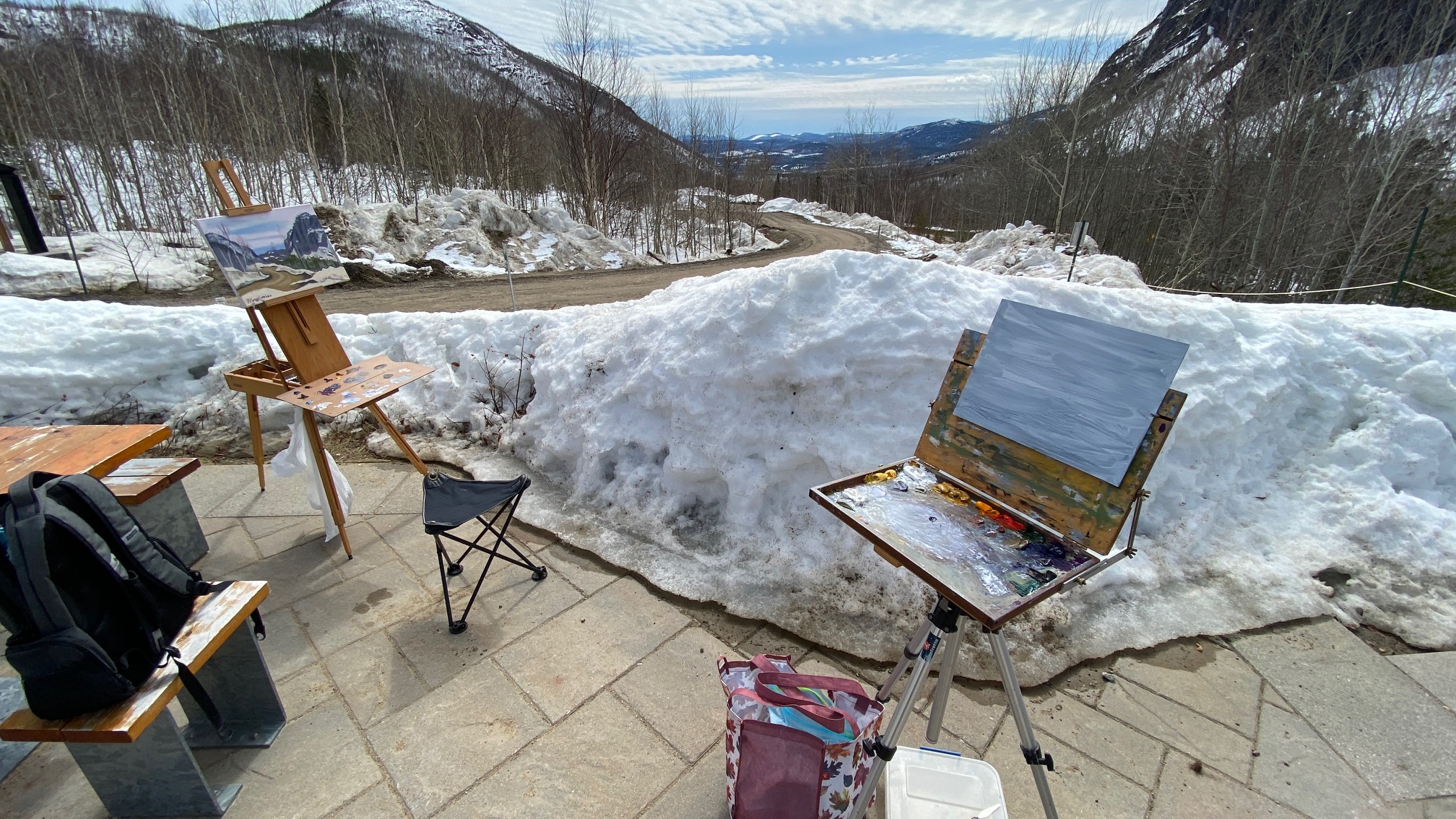 I have to say, as a long time watercolorist – if you choose to stand and paint in the rain, it’s pretty nice to be painting in oils.