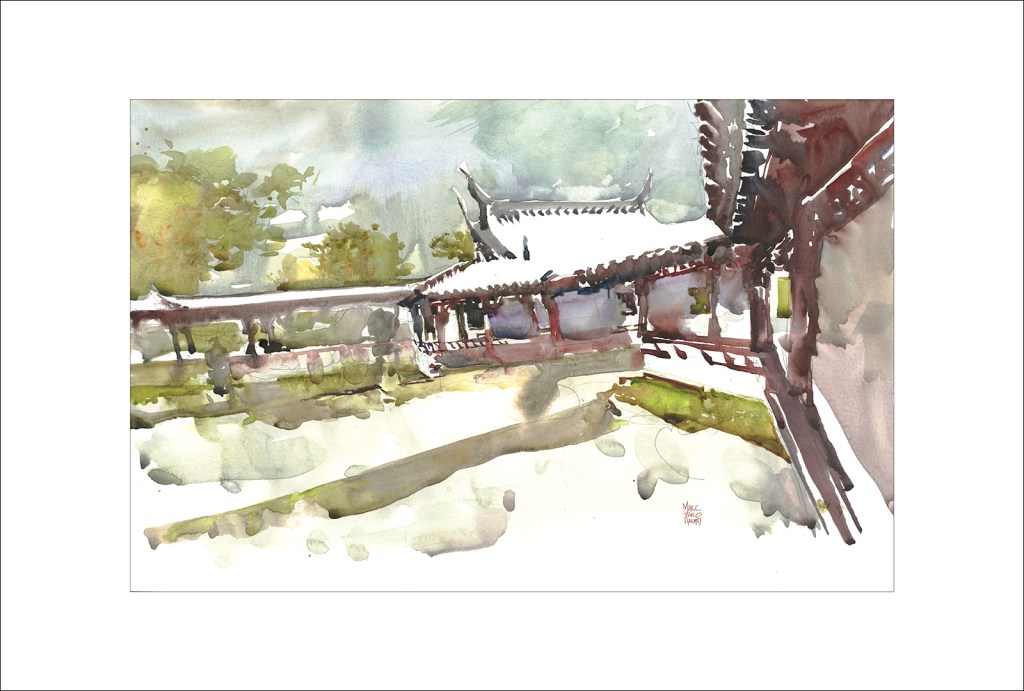 Day 14: #30x30DirectWatercolor: In the Red Pillar’d Courtyard