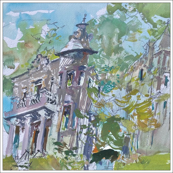 I love the freestyle of your buildings. In fact I think it makes the painting more interesting! Keep going. I sooo enjoy y our blogs!!