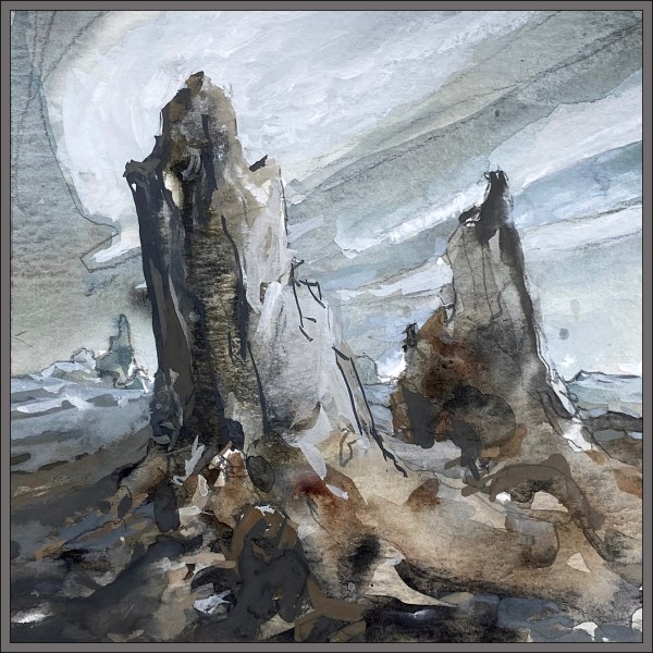 Love all these Marc! It looks like you were using a very limited palette here? Blue / Brown / White gouache? Also love seeing the brushstrokes, especially the ones with the splayed brush. Tomorrow 6″x6″?
