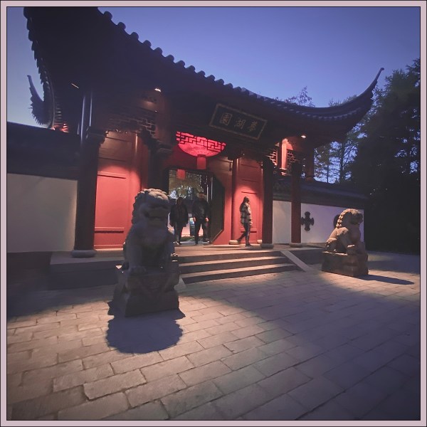 - The red light bouncing off the doorway – especially where it backlights the stone lion.
