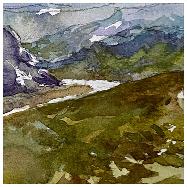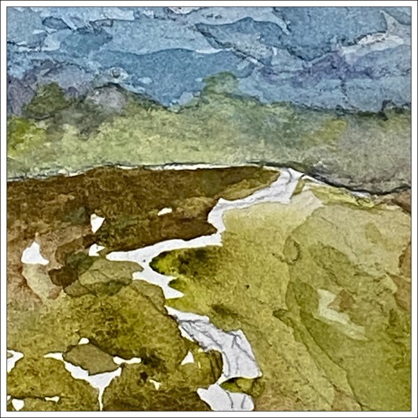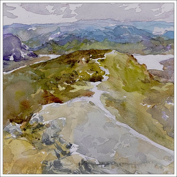 I did also tweak this little white hook on the left (white gouache!) to suggest that it might visually join the larger white blob on the right, and give the impression there is a distant lake behind the hill.
