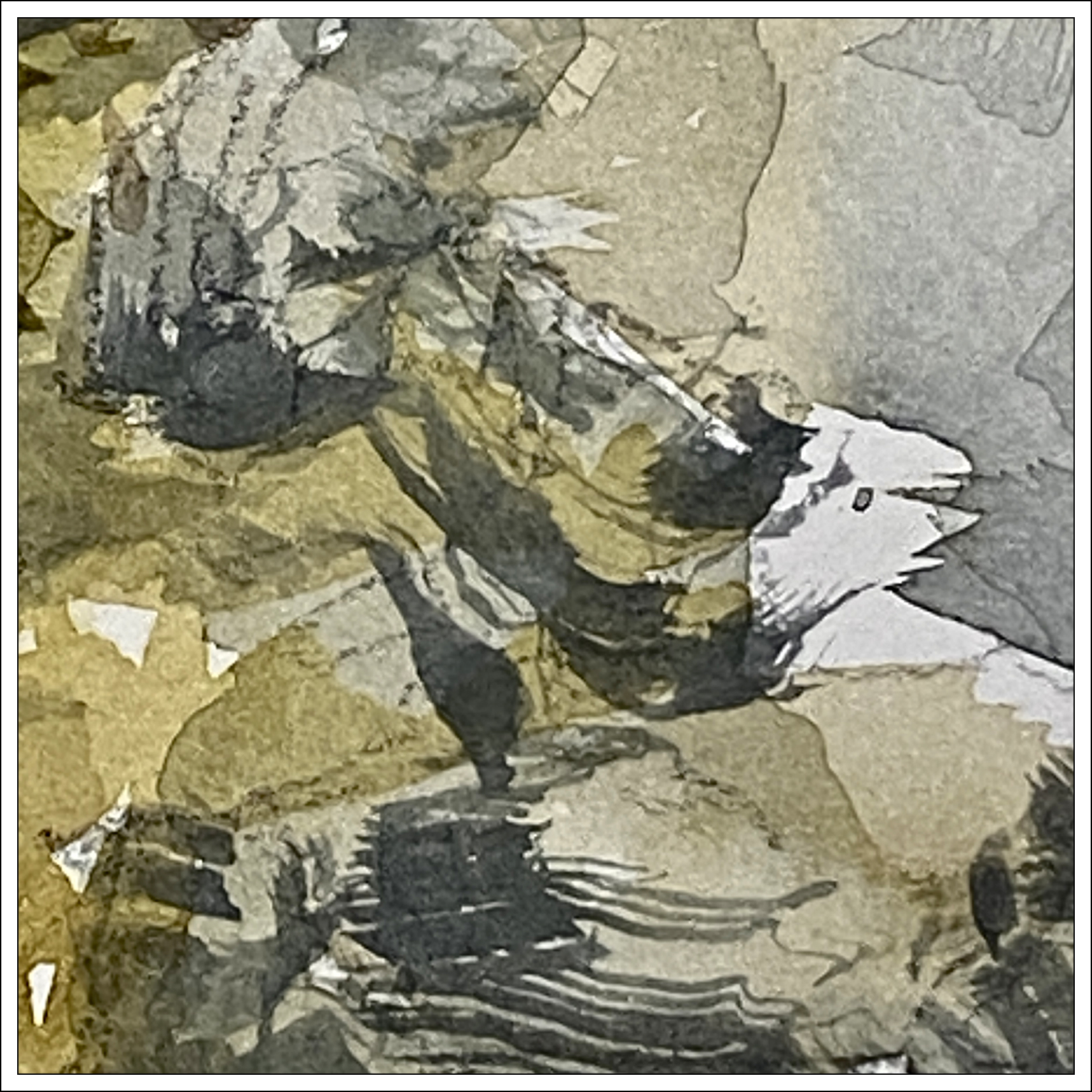 There was a small part of this little 8×8″ painting that I had to fuss over a few times – rewetting and lifting color, painting in with some diluted gouache, and then wetting again – I was dangerously close to overworking the paper in that one little spot.