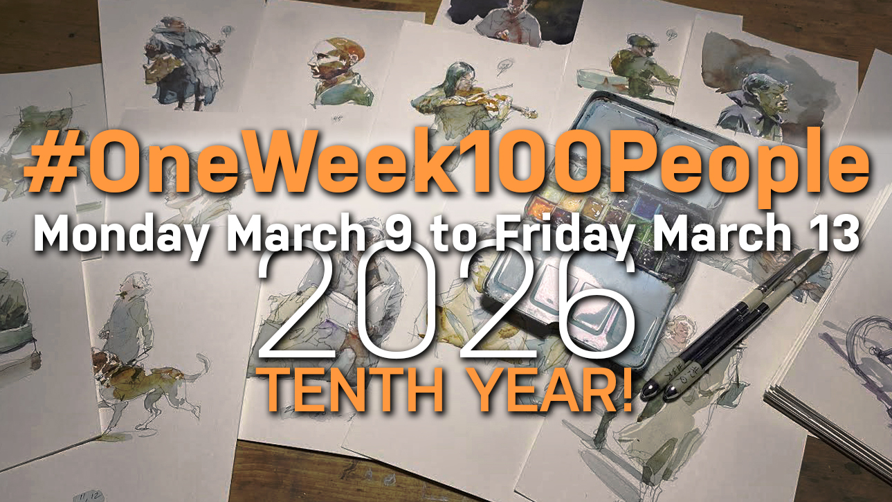 [ Note for new visitors: #OneWeek100People is our annual free drawing event, where we sketch 100 people in a single week; usually from life; in the spirit of Urban Sketching or maybe a life drawing workshop; but we’re not picky – do it however you want. From imagination. From reference. Doesn’t matter! The important thing is drawing together (online or with friends) and posting your work! Read more about how to participate: [ HERE ]
