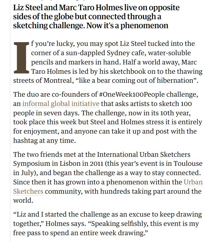 Here’s a bit of fun – we’ve been noticed somehow (let me know if you know how!) and Ima Caldwell has done a great little article about #OneWeek100People in The Guardian.