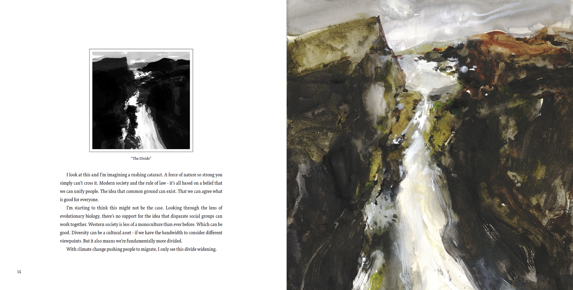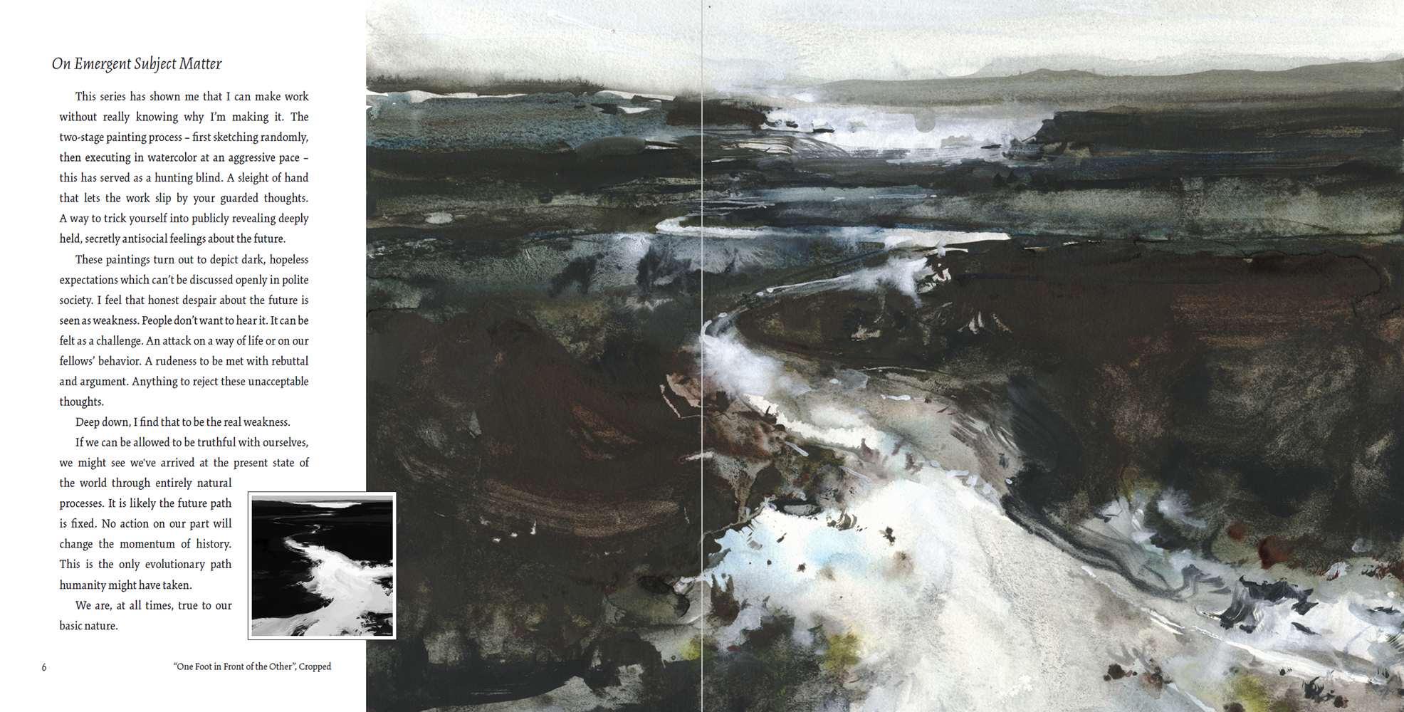 In essence, the book is a meditation on the future, through the lens of contemporary landscape painting. This is one artist looking forward from where we stand in 2019, facing unabated climate change, and the environmental legacy of industrialization.