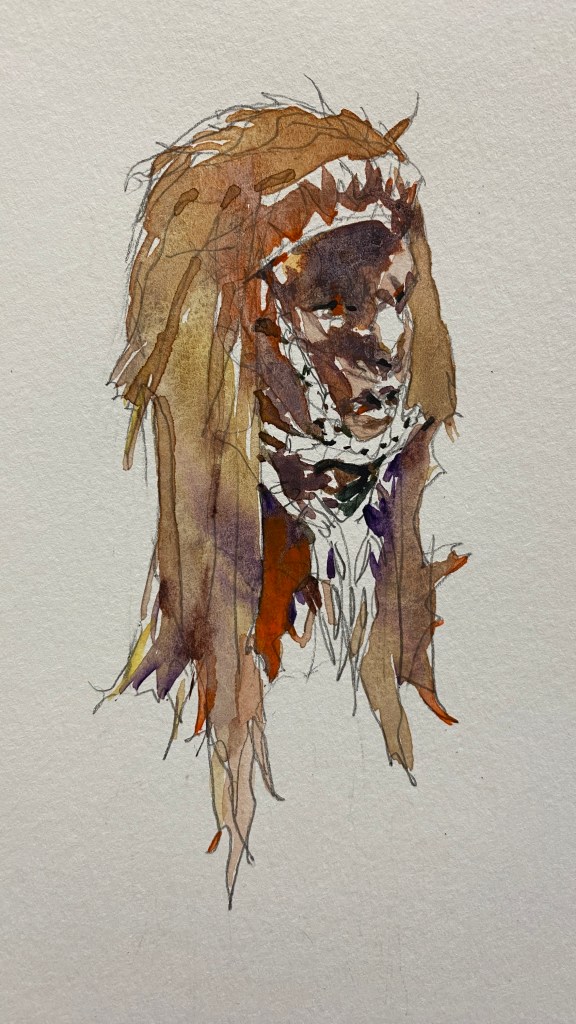 I’m not being particularly accurate in these sketches – they’re just interpretations of the real things – so of course, my apologies if I’ve put the wrong culture under any of these hats. What can we do? I’m just a sketcher!